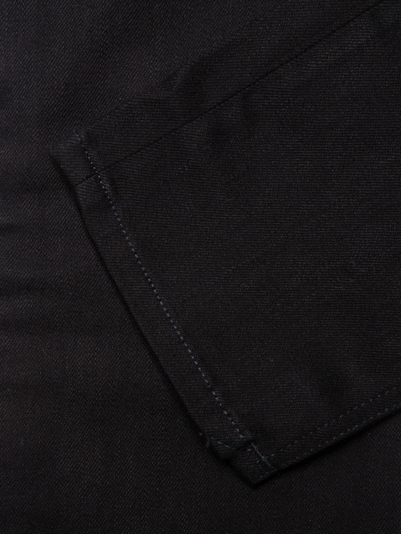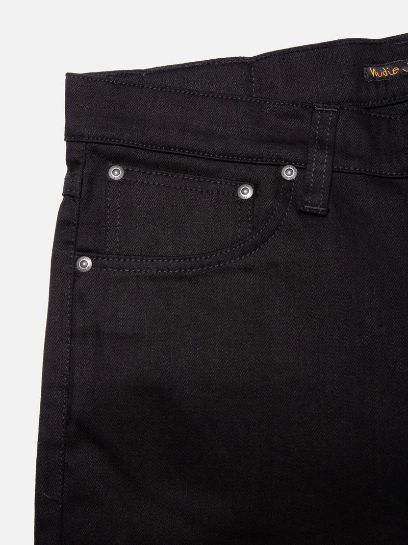 Normally, when denim is dyed, part of the dye will absorb in the cotton fibers while the rest remains bound only to the surface of the yarns. This is what gives denim its aging property that in many cases is sought after. However, when it comes to black jeans this is not always the case which is why we developed the Everblack denim. The technical difference between Everblack and regular black denim is that it utilizes a method and type of dyestuff that allows improved absorption as well as a stronger fixation. This results in denim with a significantly greater colorfastness, which does not fade with wearing and washing.