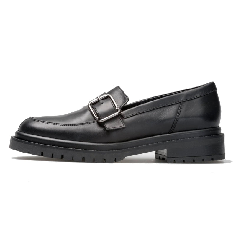 Metallinen, pyöreäkulmainen solki näyttää upealta näissä paksupohjaisissa Dora-loafereissa. Solkiloaferin päällinen on tehty helppohoitoisesta, vedenpitävästä pintanahasta ja myös vuori on nahkaa. Malli on täydellinen luottokenkä välikauden menoihin, eikä sadekaan haittaa! Kumipohja on pitävä ja kulutusta kestävä.