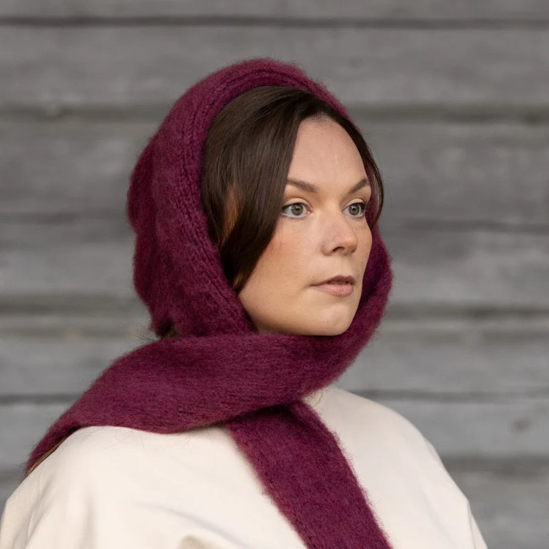 Tämä Luumu Haave-huppu on neulottu käsin maailman Myssypääkaupungissa Pöytyällä Myssymummojen puikoissa 100% suomenlampaan villasta ja karstattu ihanan pehmeäksi Pöytyän kirkonkylällä. Tuote on käsinvärjätty ja värjäysprosessin vuoksi väreissä saattaa esiintyä pientä eräkohtaista vaihtelua.