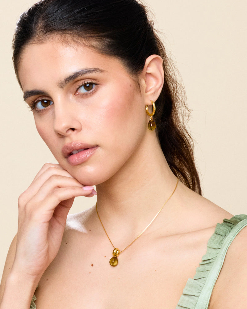 Sugar Drop Choco -kaulakoru on valmistettu 18k kullatusta 925 Sterling hopeasta ja lasihelmistä.