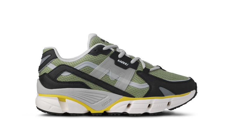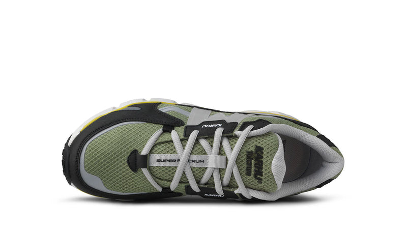 Tekninen juoksukenkämuotoilu on innoittanut tätä modernia retro-lenkkaria, joka heijastaa KARHUn lähestymistapaa suorituskykyyn tähtääviin jalkineisiin. KARHUn suunnittelutiimi loi Super Fulcrum -mallin ajatuksesta, että kenkä olisi erittäin pehmustettu ja siinä olisi sisäänrakennetut ohjausominaisuudet. Lopputuloksena on jokapäiväiseen käyttöön sopiva lenkkari, joka tukee luonnollista ja tasapainoista askelta.