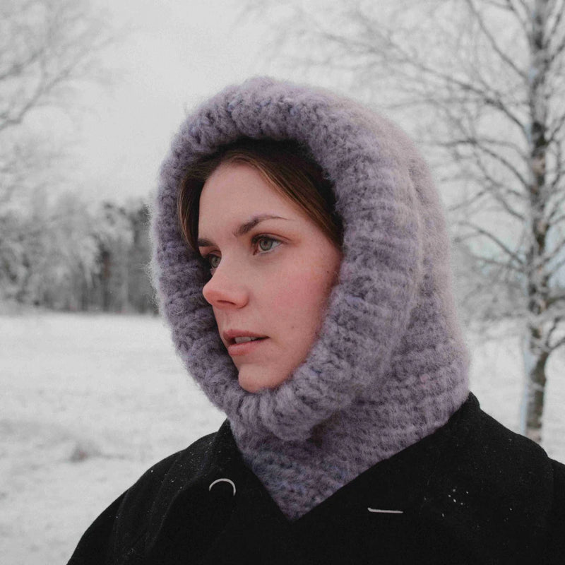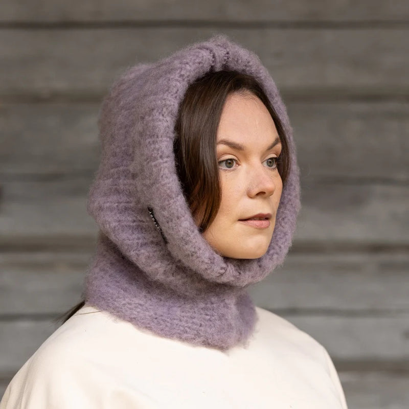 Tämä laventeli Tuike Hohto-huppu on neulottu käsin maailman Myssypääkaupungissa Pöytyällä Myssymummojen puikoissa 100% suomenlampaan villasta ja karstattu ihanan pehmeäksi Pöytyän kirkonkylällä. Tuote on käsinvärjätty ja värjäysprosessin vuoksi väreissä saattaa esiintyä pientä eräkohtaista vaihtelua.
