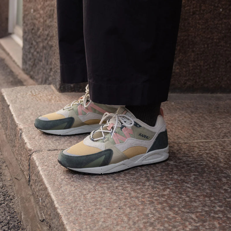 Laadukkaista materiaaleista ja tarkoin viimeistellyin yksityiskohdin valmistettu KARHU Fusion 2.0 tarjoaa saumattoman yhdistelmän vintage-tyyliä ja modernia suorituskykyä. Mokkanahkavahvikkeet antavat kengälle pehmeän tuntuman, kun taas ylimääräinen nahkainen vahvike tuo ensiluokkaisen viimeistelyn. Mesh takaa optimaalisen hengittävyyden. Takana oleva vetokieli helpottaa pukemista, litteät nauhat antavat klassisen ilmeen ja heijastavat yksityiskohdat lisäävät design-elementtejä. Räiskepintainen EVA -välipohja tuo sekä ainutlaatuisuuden että mukavuuden.