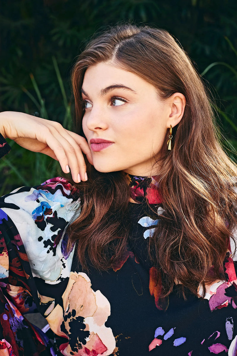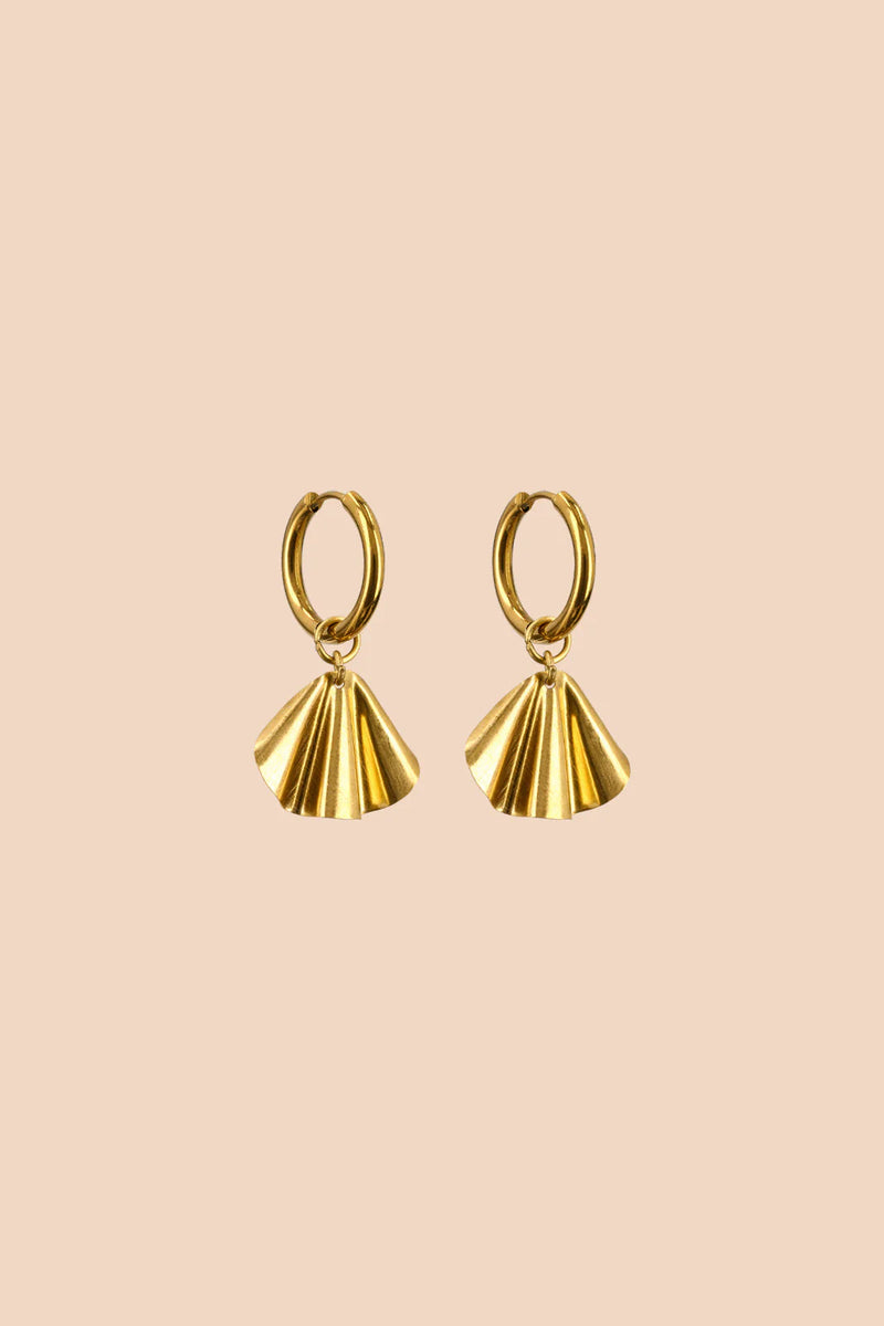 Tyylikkäät Ada Hoop-korvakorut ovat käsityönä Nepalissa valmistetut korut, joissa pienestä renkaasta roikkuu viuhkamainen messinkilevy. Korvakorujen näyttävä ilme on luotu käsin takomalla, joka tekee jokaisesta korvakorusta oman uniikin kappaleensa. Korujen messinki on käsittelemätöntä, eli korut patinoituvat ajan mittaan ja muuttuvat ilmeeltään rouheammiksi.