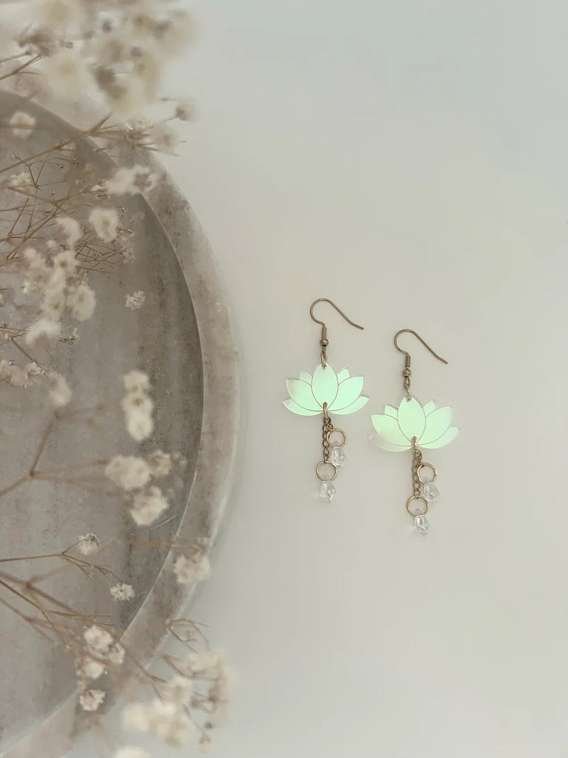 Koru säteilee rauhaa, puhtautta ja pohjoisen talven kaunista lumoa. Hologrammiakryyli tuo värien leikkiä valon osuessa koruun sekä lasipisarat kruunaavat korun kauneuden. Lumilotus on koru niille, jotka kantavat mukanaan talven taikaa ja luonnon rauhaa. Korujen teräosat ovat korkealaatuista ruostumatonta kirurginterästä, joka sopii herkkäihoiselle ja allergisille. Koruosat on akryylia. Suosittelemme säilyttämään korut mukana tulevassa korurasiassa, jolloin ne säilyvät siistinä sekä eivät naarmuunnu. Suojaathan korut kemikaaleilta, kosteudelta ja kosmetiikalta. Koukkukiinnitys.