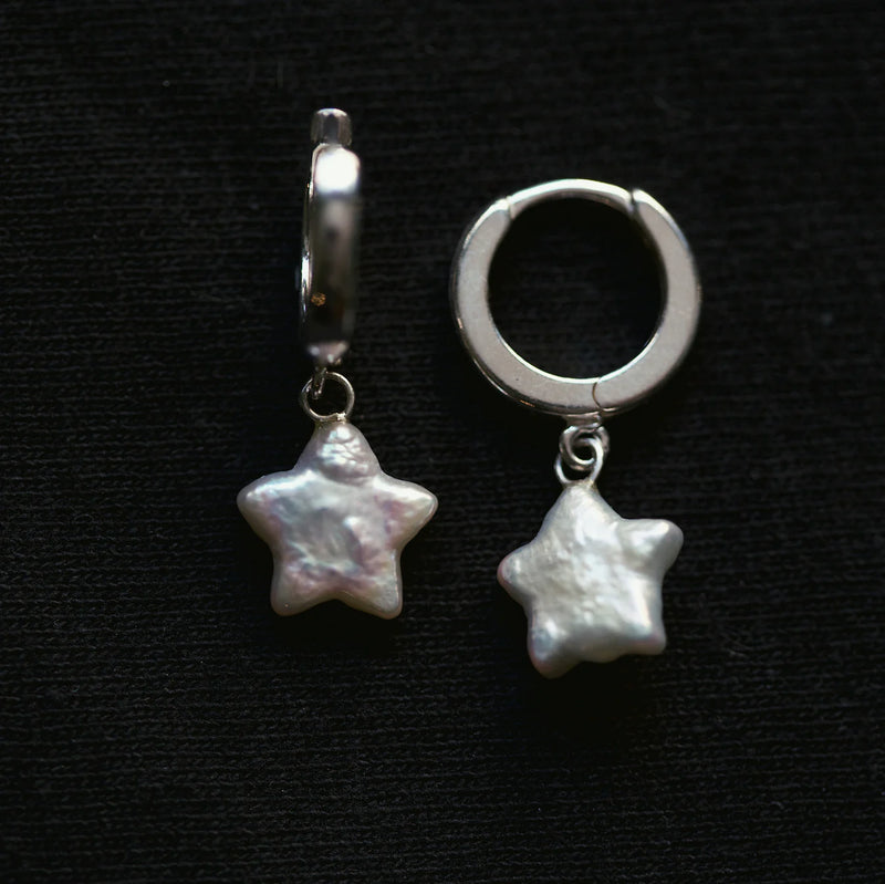 Star shaped fresh water pearl with sterling silver earhoops.