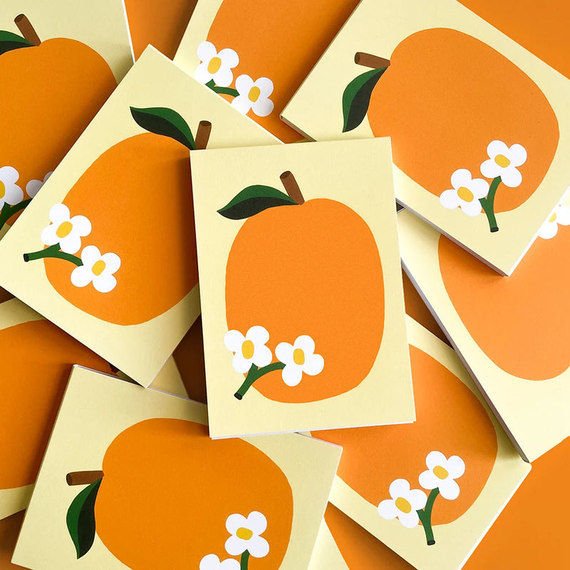 Värikäs hedelmä-aiheinen lehtiö, jonka sisäsivut on viivoitettu ja liimasidonnan ansiosta yksittäinen sivu on helppo ja siisti repäistä irti tarvittaessa.