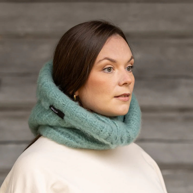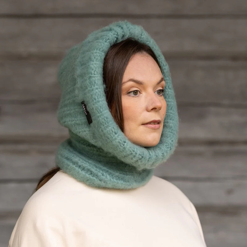 Tämä mintunvihreä Säde Hohto-huppu on neulottu käsin maailman Myssypääkaupungissa Pöytyällä Myssymummojen puikoissa 100% suomenlampaan villasta ja karstattu ihanan pehmeäksi Pöytyän kirkonkylällä. Tuote on käsinvärjätty ja värjäysprosessin vuoksi väreissä saattaa esiintyä pientä eräkohtaista vaihtelua.