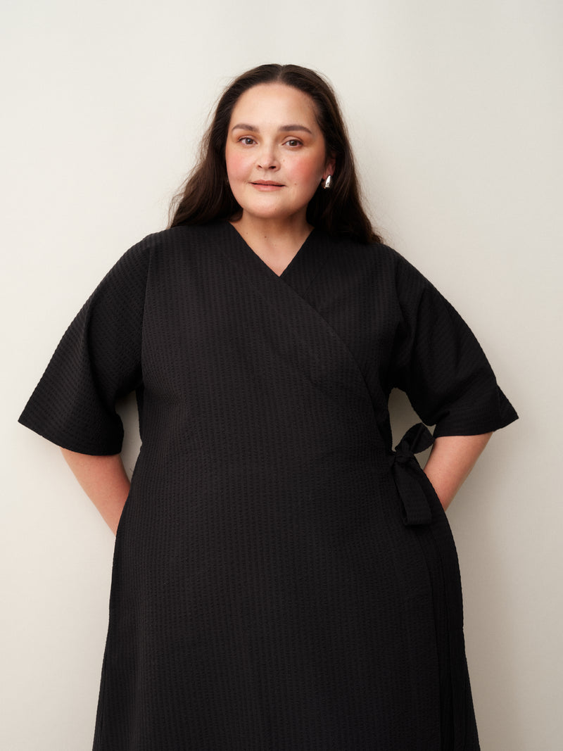 • Monikäyttöinen ja näyttävä kietaisumekko kudottua seersucker-kangasta