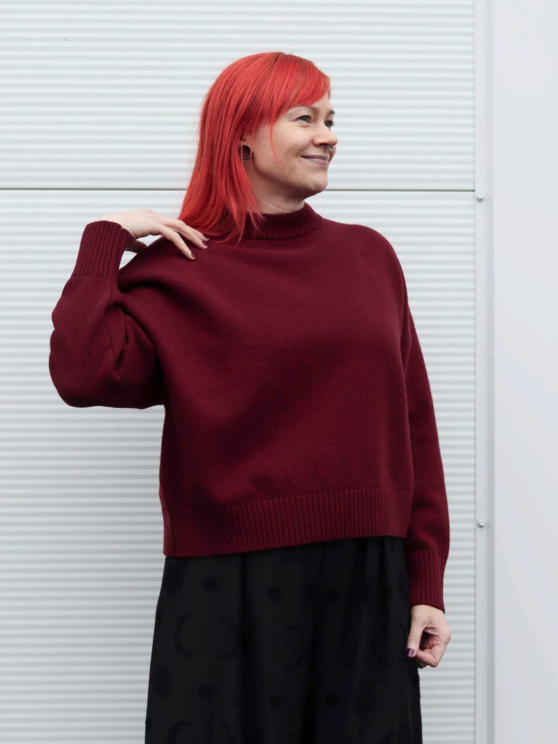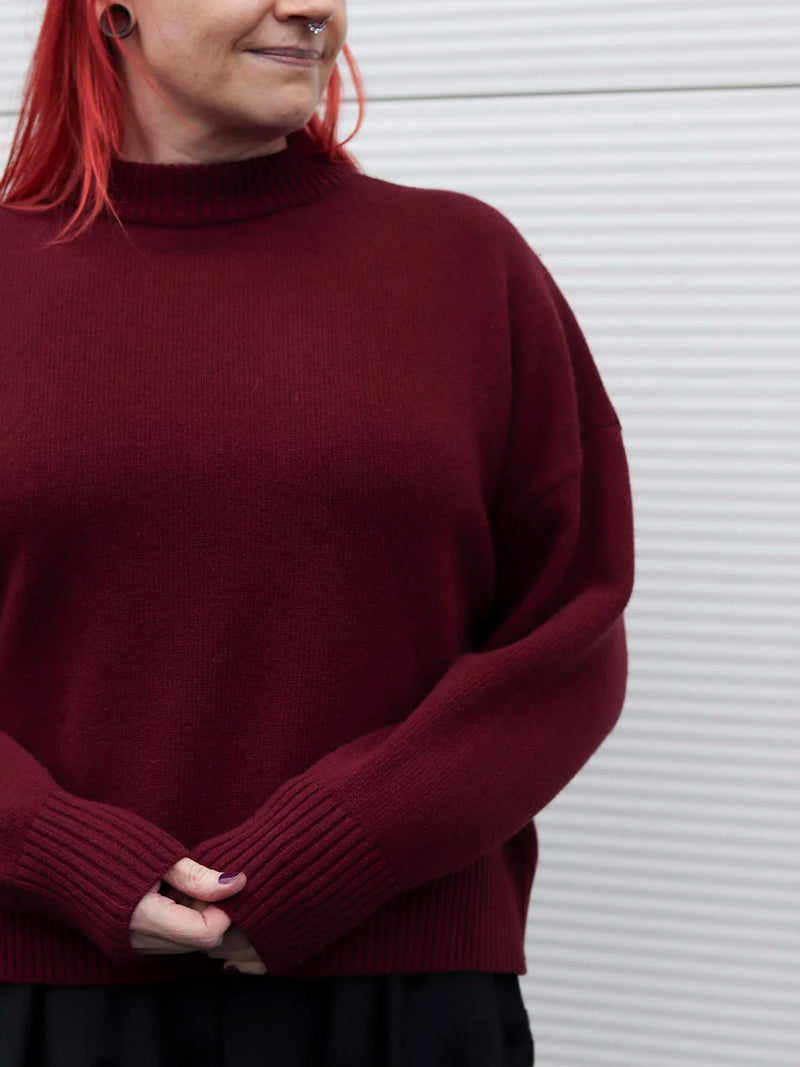 Lyhyen mallinen Bess neulepaita hehkuvan viininpunaisessa värissä. Paksu ja lämmin neule, jossa viihdyt kotona, töissä ja vapaa-ajalla. Sopii hyvin syksyn viimoihin ja talvipakkasille lämpöä tuomaan. Kokopitkät hihat sekä lasketut olkasaumat. Villan lisäksi neuleessa on 20% polyamidia, joka tekee neuleesta pitkäikäisemmän ja paremmin kulutusta kestävän – sekä mukavamman käyttää. Yhdistä esimerkiksi suorien housujen kanssa toimistolle. Lyhyen mallinsa ansiosta helppo yhdistää myös vaikkapa hameen, sukkahousujen ja maihareiden kanssa. Bess neuleella luot itsellesi lämpimän ja samalla tyylikkään asukokonaisuuden!