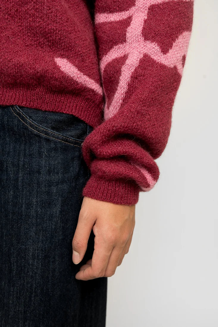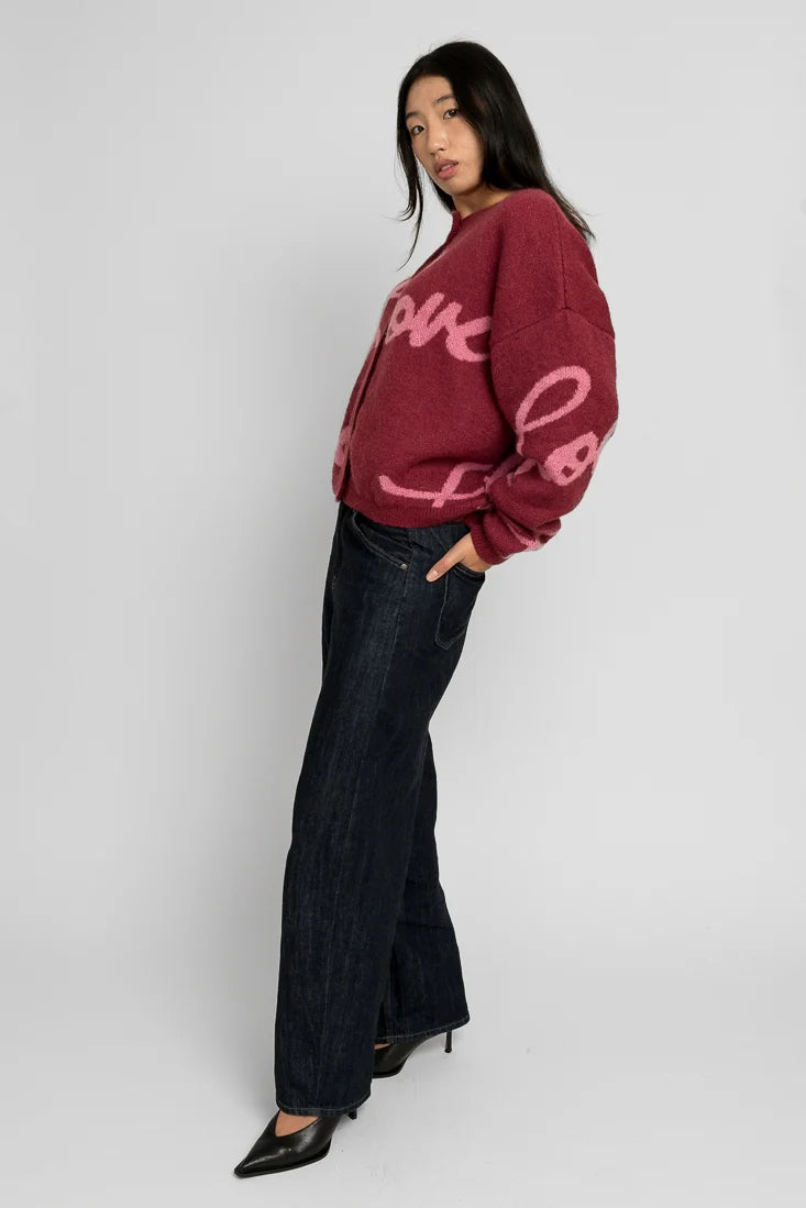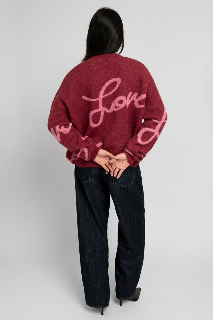 Tämä mohairsekoiteneule on suunniteltu ja valmistettu rakkaudella Suomessa. Rakastetun Love-kuosin on suunnitellut Maija Louekari. Mallimme on 174cm pitkä.