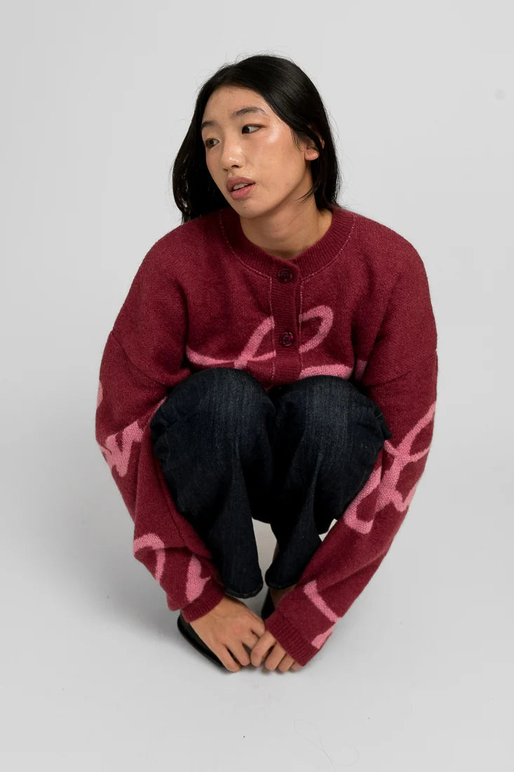 RIIMI neuletakki on pehmeän pörröinen ja se sopii käyttöön vuodenajasta riippumatta. Mohairneule toimii monilla ikään ja sukupuoleen katsomatta. Neuleeseen on hyvä ja turvallista pukeutua, se on kaunis, pehmeä ja puhutteleva. Tämä neuletakki on malliltaan rennon väljä, helma on hieman cropattu ja se on selkeästi lyhyempi kuin suositussa Runo-neuletakissa. Hihoissa ja helmassa on ribbineulosresorit ja edessä nappikiinnitys. Aiemmin jo kankaissa hurmannut oranssi-vaaleanpunainen Love-kuosi on nyt saatavilla tämän upean neuletakin muodossa.