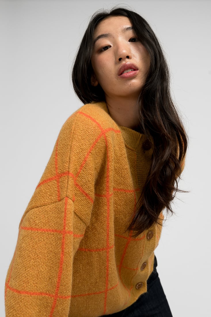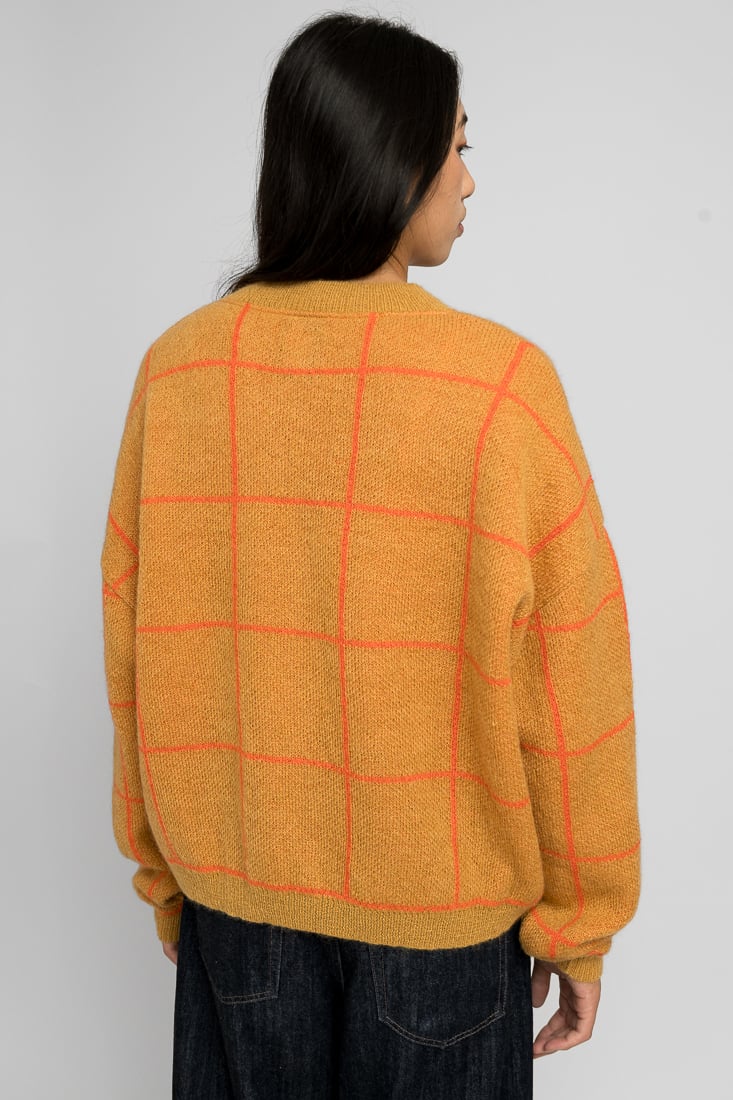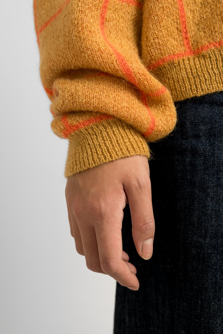 Tämä mohairsekoiteneule on suunniteltu ja valmistettu rakkaudella Suomessa. Mallimme on 174cm pitkä.