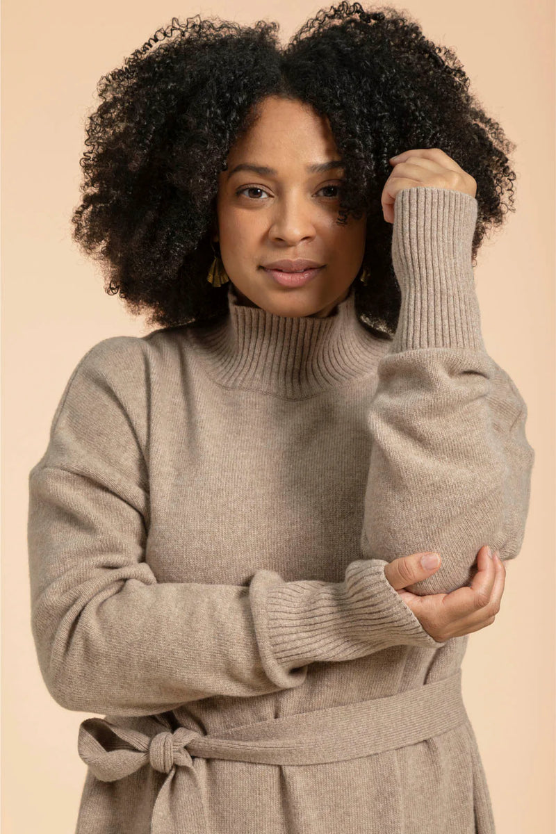 Tässä ylellisessä villamekossa pysyt lämpimänä ja tyylikkäänä koko talvikauden. Sävynä mekossa klassinen beige.