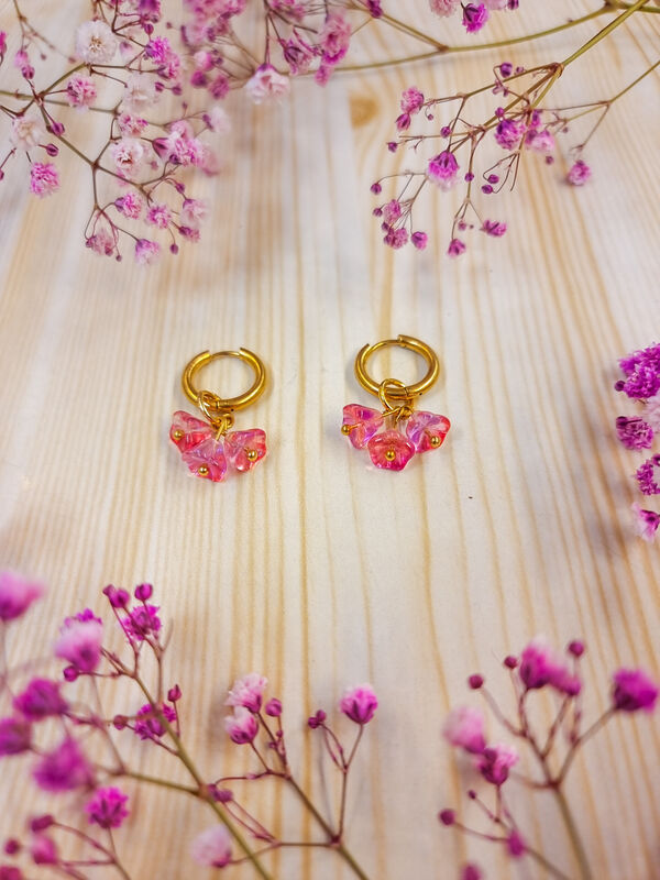Kukan muotoiset lasihelmet, joissa pinta on kauniin helmiäinen.