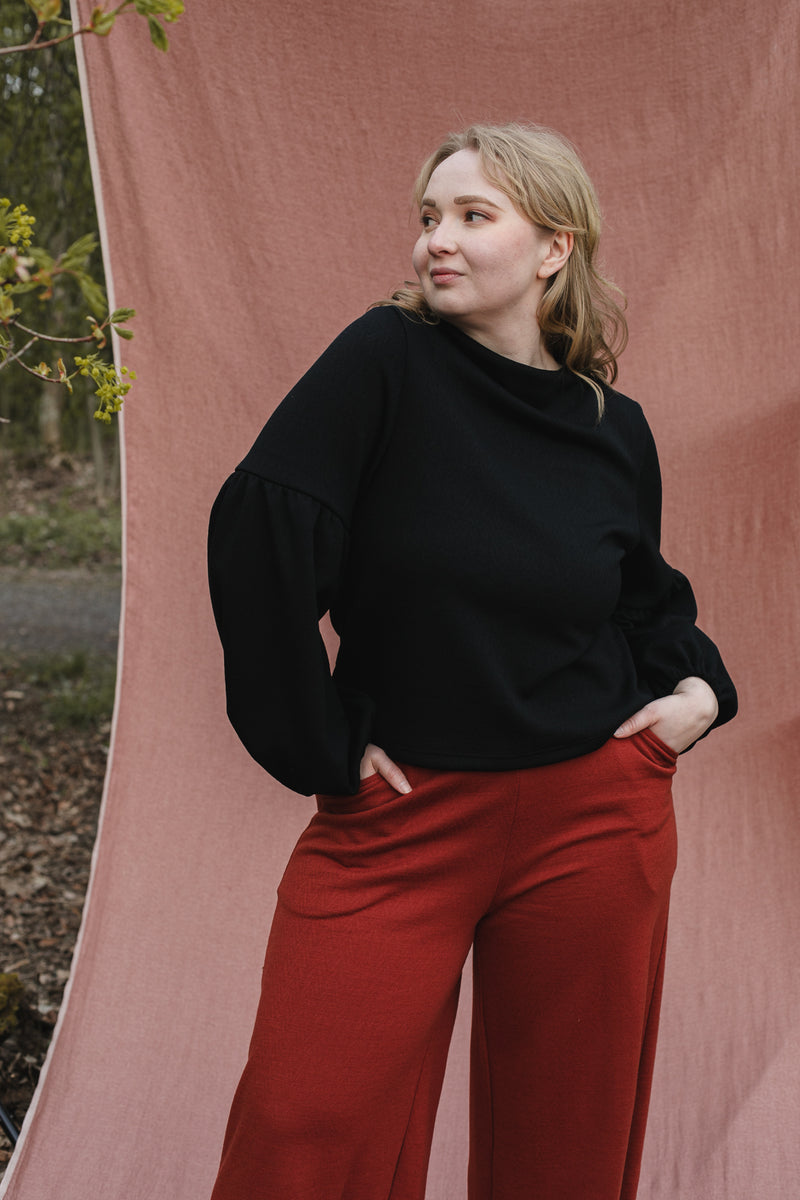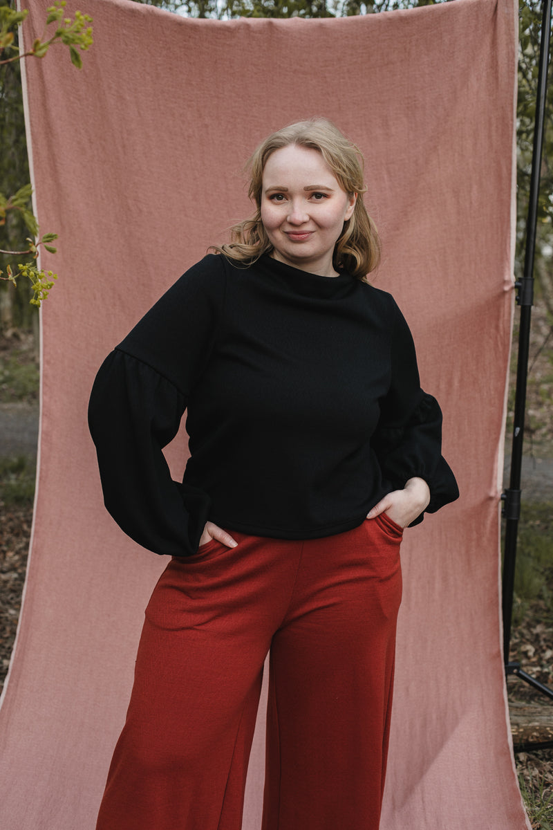 Materiaalina pehmeä 100% merinovillaneulos, jossa hienovarainen Kaarna-struktuurikuosi.