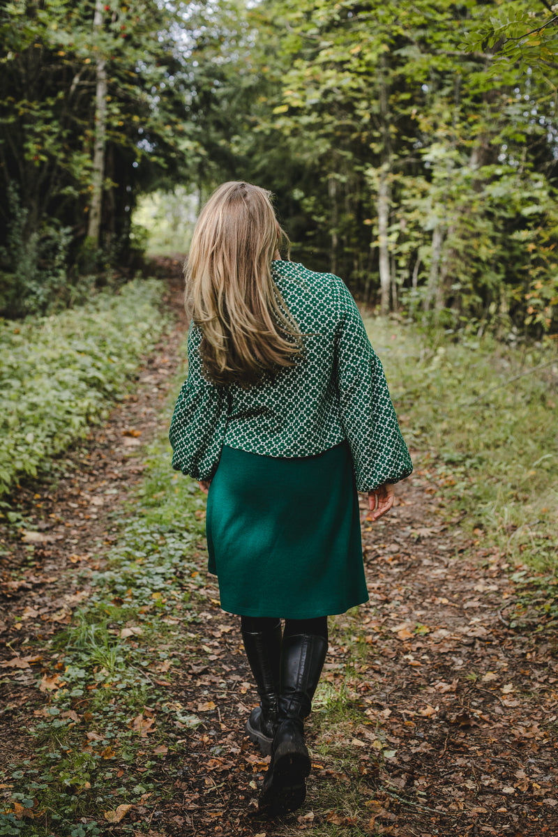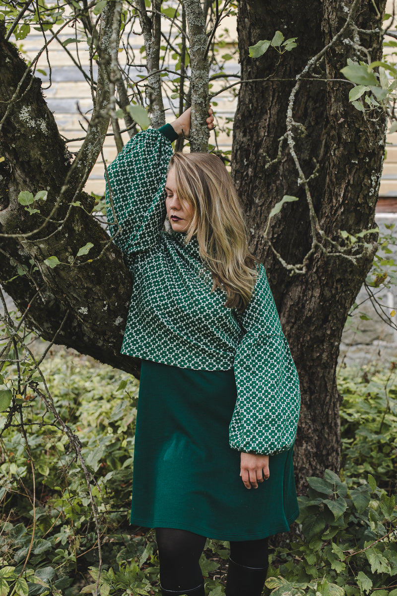 • Talvikki on suora ja lyhyehkö malli, joka korostaa upeita pussihihoja.