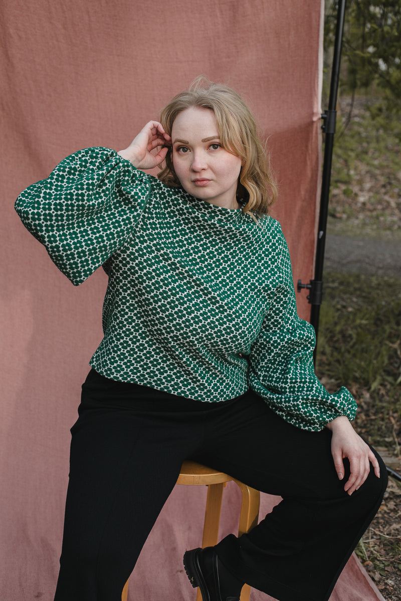 Talvikki on yksi myydyimmistä malleista ja kaupallamme melkeinpä jokainen, joka puseroa on sovittanut haluaa sen ostaa eikä ihme, koska se näyttää hyvältä jokaisella vartalotyypillä.  Toinen syy tämän mallin suursuosioon on myös se, että tätä paitaa voit käyttää sekä arkena että juhlassa.
