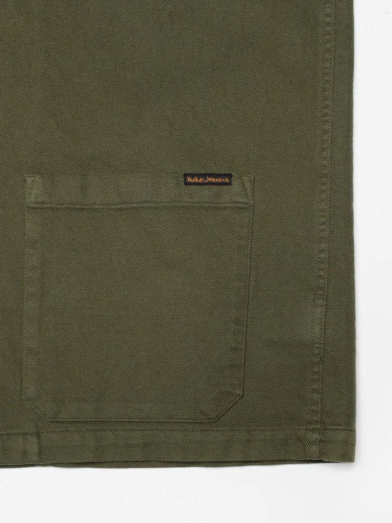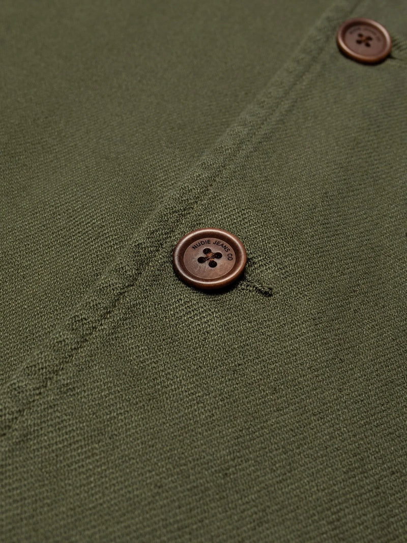 Crafted in a supple fabric with evident twill lines. This worker jacket features all essential details; point-collar, three patch pockets, and one-button cuffs. The cotton used is both organic and Fairtrade.