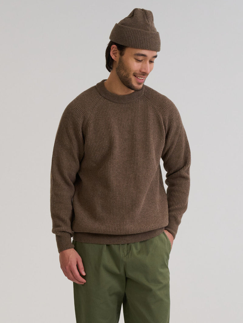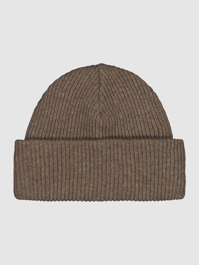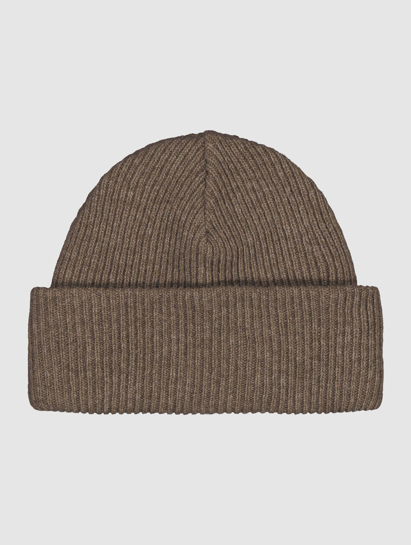 Paksusta villasekoitelangasta valmistettu ribbipipo. Taitettava reunus.