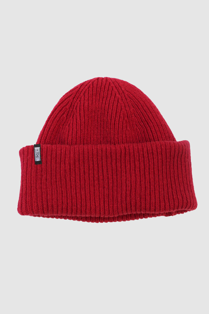 Paksusta villasekoitelangasta valmistettu ribbipipo. Taitettava reunus.
