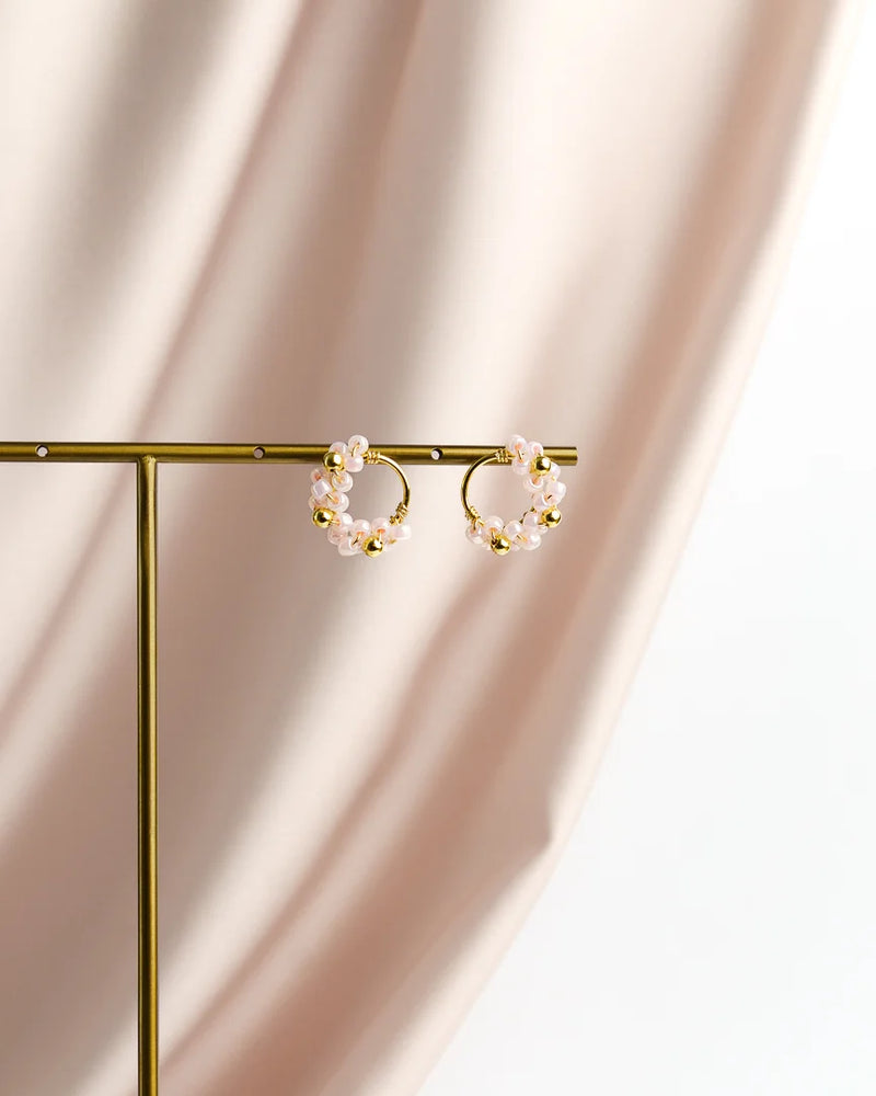 Hurmaavan söpöt pienet korvakorut tappikiinnityksellä! Koruissa on käytetty japanilaisia siemenhelmiä sekä sterling-hopeisia helmiä. Korujen metalliosat ovat laadukasta 925 sterling-hopeaa paksulla 18 karaatin kultauksella. Korut toimitetaan kauniissa, vaaleanpunaisessa korurasiassa.