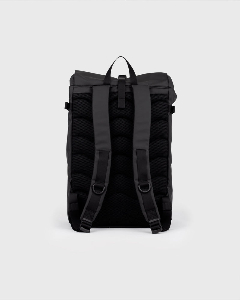 Featured with waterproof Aquaguard YKK-zippers and made from recycled polyester with a waterproof PU coating, recycled polyeten foam, and recycled nylon webbing. This backpack is built for long-lasting performance in any weather.