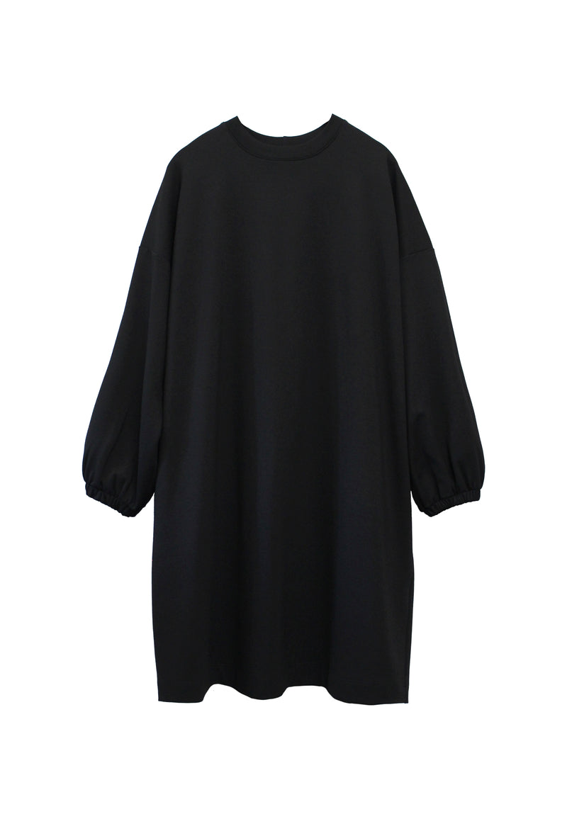Musta napakka puntoneulosmekko on todellinen jokapaikan mekko. Mukavassa mekossa on pudotettu olkalinja. Pitkissä hihoissa on kuminauharypytys ja pääntiellä kaksinkertaine "resori" samasta materiaalista. Mekon mukanan tulee kangasvyö, mutta mekko toimii mainiosti ilman vyötäkin.