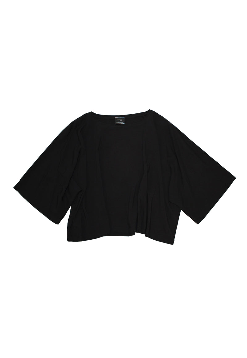 Kauniisti laskeutuvasta bambusta valmistettu super chic laatikkomallinen pusero. Lyhyt cropattu malli jossa on puolipitkät kimonohihat. Materiaali on kevyttä ja semikiiltävää.