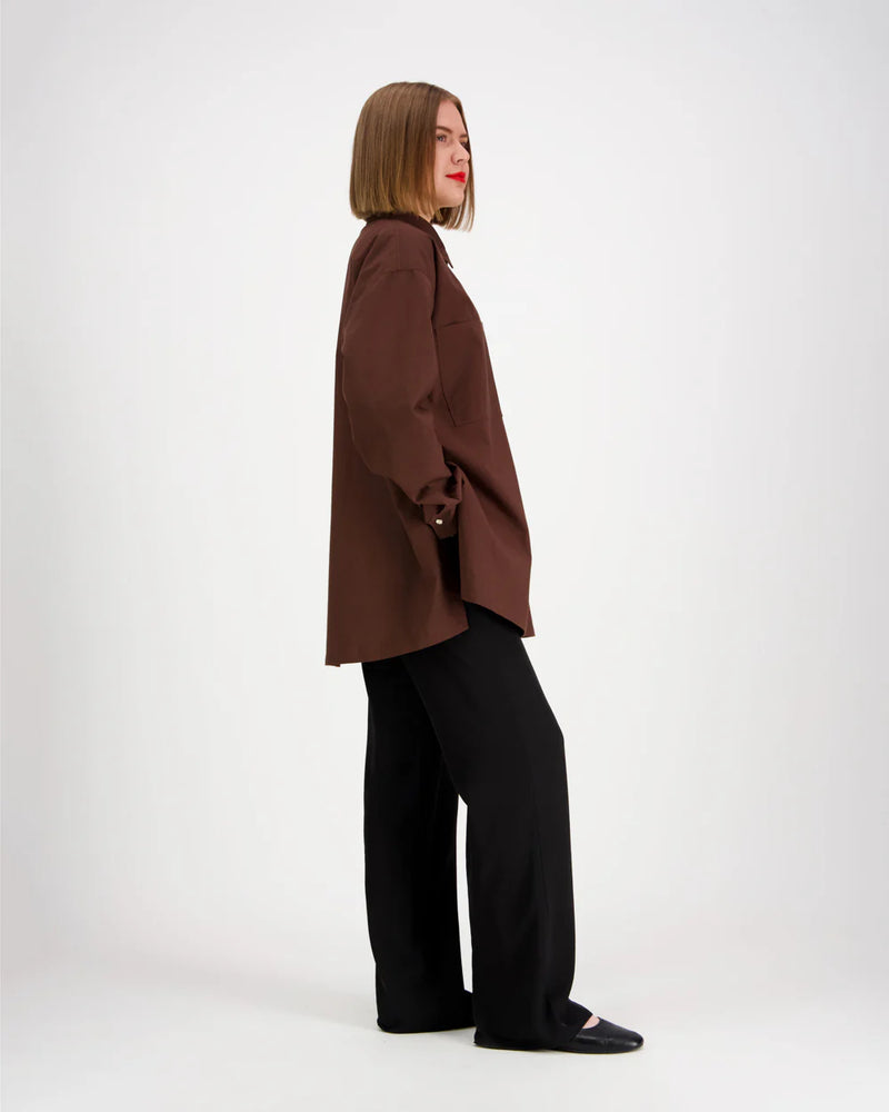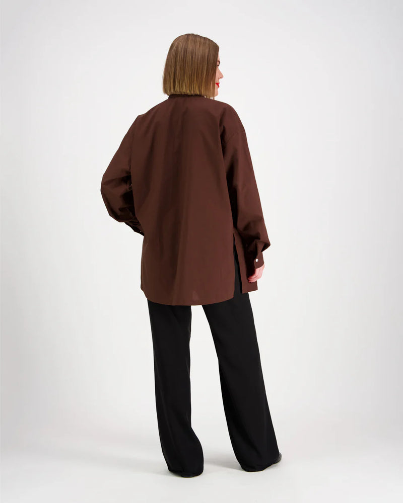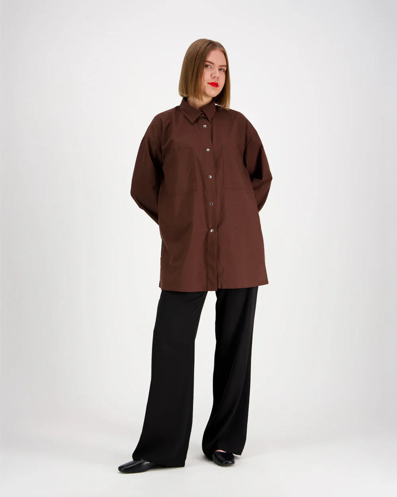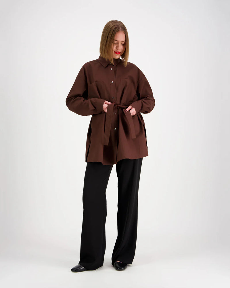 Rento oversize yhden koon kauluspaita. Paidassa on kaksi rintataskua, nepparit edessä ja hihansuissa, halkiot sivussa ja laskokset takana. Paidan mukana tulee myös irrallinen vyö samassa kuosissa, joka mahdollistaa paidalle myös toisenlaisen käyttötarkoituksen.