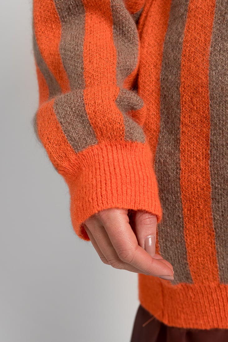 Tämä mohairsekoiteneule on suunniteltu ja valmistettu rakkaudella Suomessa. Neuleen selässä on kudottuna suuri Peace-teksti, jonka on suunnitellut Maija Louekari.