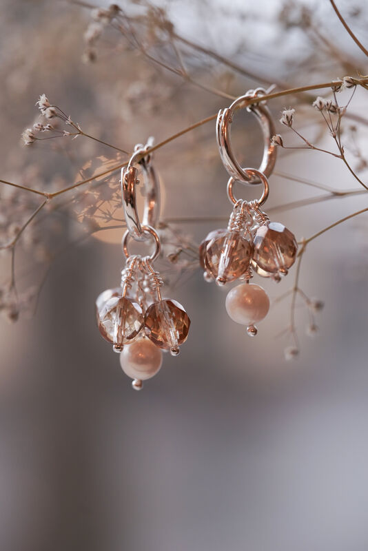 Korussa on rengaskiinnitys. Korvakoruissa on vaihdettava riipuosa, joten voit vaihdella renkaisiin muita Seasons -osia, joita myydään myös yksittäin. Asettele riipus renkaaseen niin, että makeanvedenhelmi tulee keskelle ja lasihelmet ovat tasaisesti ympärillä.