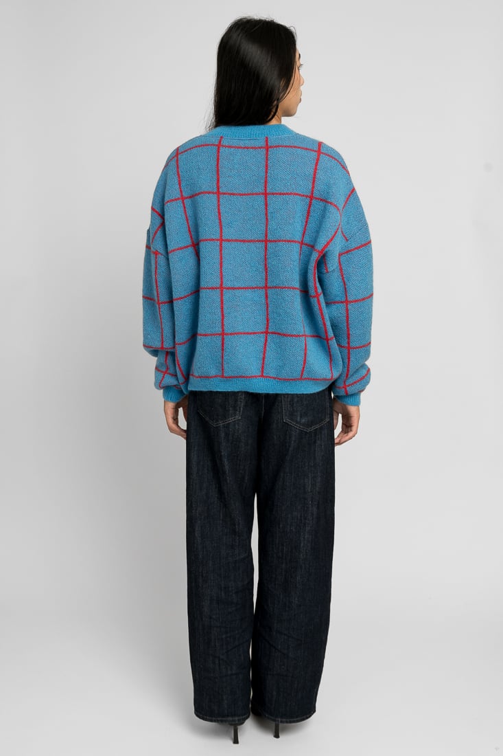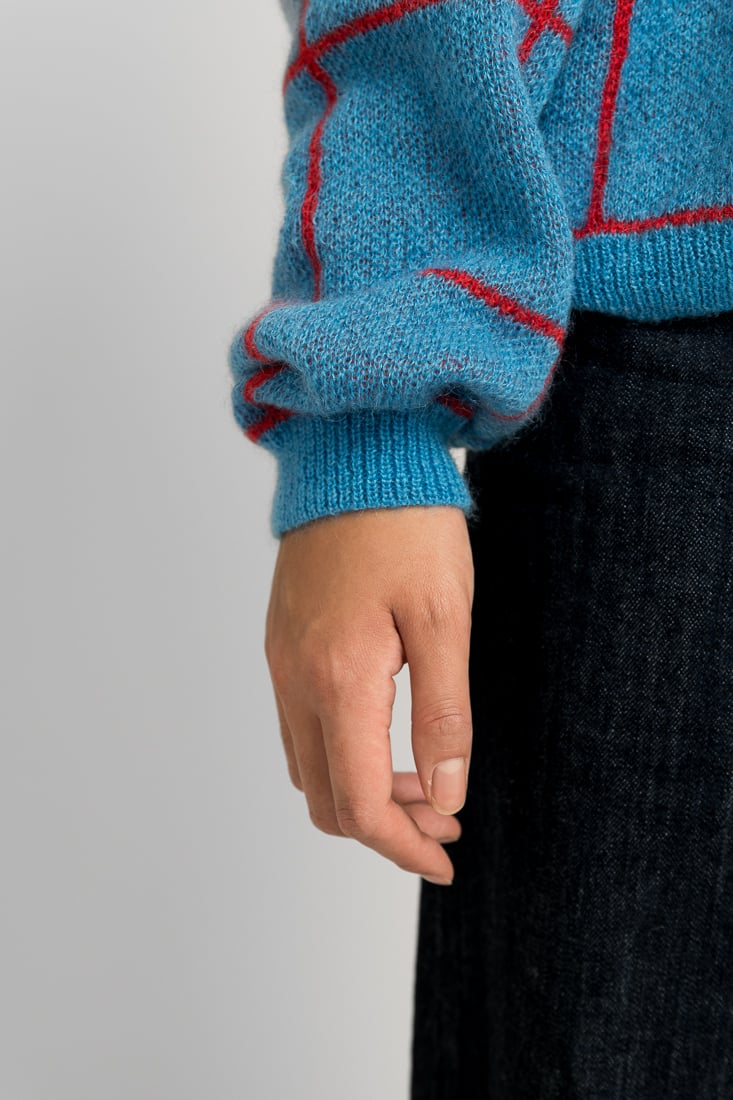 Tämä mohairsekoiteneule on suunniteltu ja valmistettu rakkaudella Suomessa. Mallimme on 174cm pitkä.
