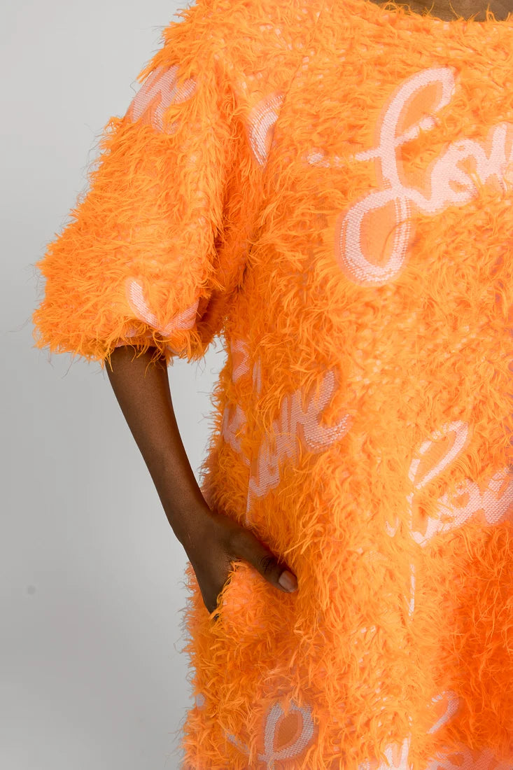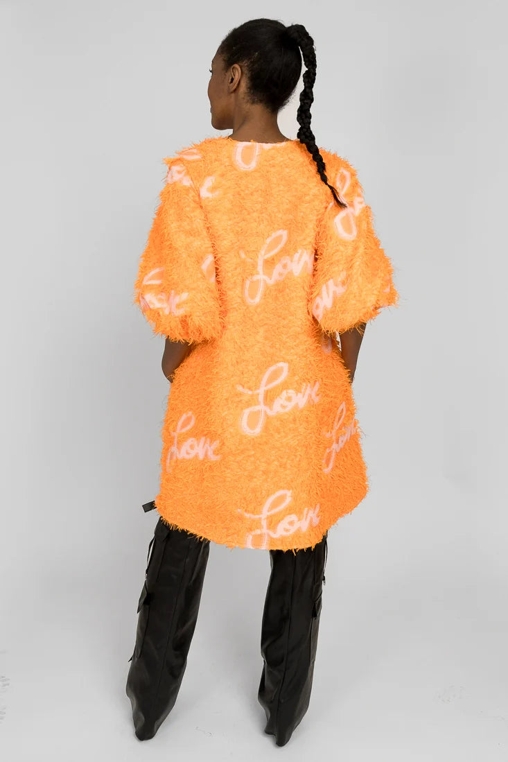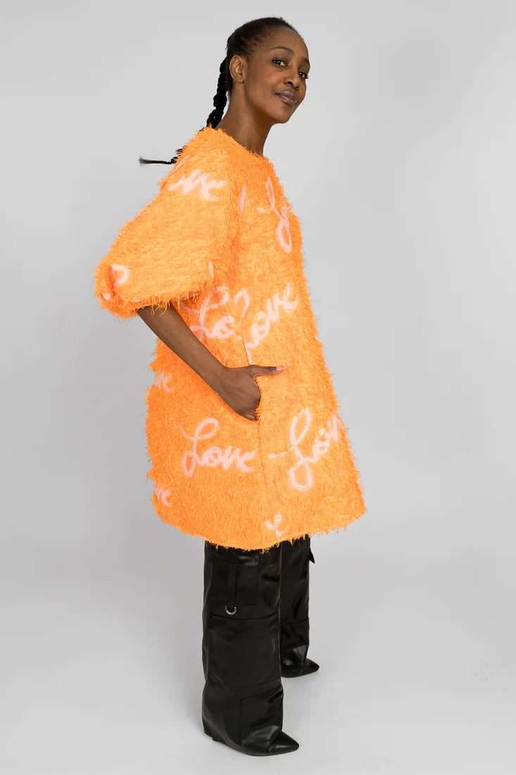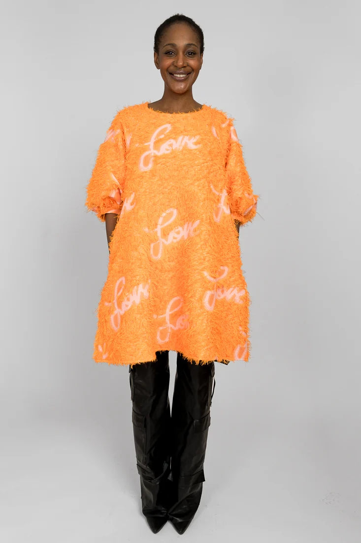 Senni-mekko on valmistettu laadukkaasta ranskalaisesta jacquardkankaasta, jossa on leikkisät hapsut yhdistettynä Maija Louekarin suunnittelemaan Love-printtiin.