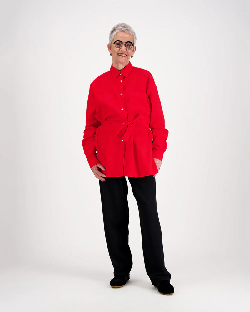 Rento oversize yhden koon kauluspaita. Paidassa on kaksi rintataskua, nepparit edessä ja hihansuissa, halkiot sivussa ja laskokset takana. Paidan mukana tulee myös irrallinen vyö samassa kuosissa, joka mahdollistaa paidalle myös toisenlaisen käyttötarkoituksen.