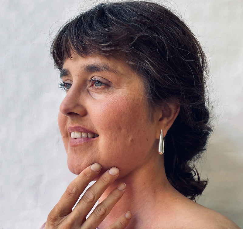 Hopeiset korvakorut on valmistettu kokonaan 925-hopeasta. Korut on valmistettu Helsingin Kampissa pienessä käsityöläispajassa ja puodissa. Elli Hukan koruissa yhdistyy ajaton muotoilu skandinaavisten linjojen ja orgaanisen muotokielen kautta.