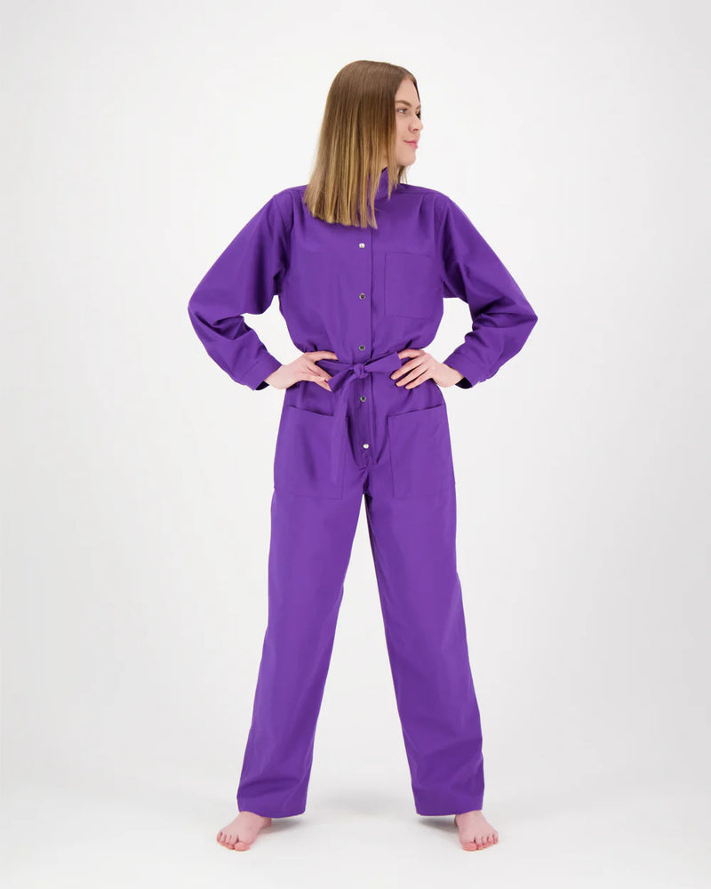 Monikäyttöinen Loikka-haalari on käytännöllinen ja mukava jumpsuit. Haalarissa on pystykaulus, rintatasku vasemmalla puolella ja kaksi taskua lantiolla. Haalarissa on vyölenkit ja vyö, nepparikiinnitys ja suora malli.