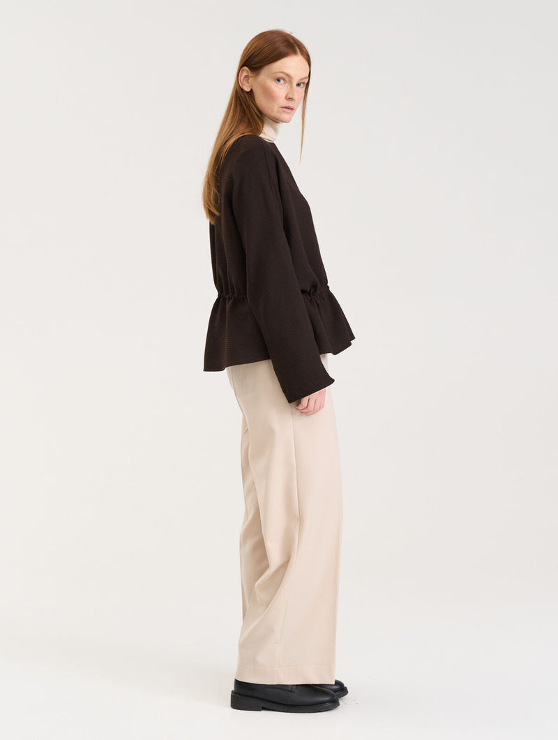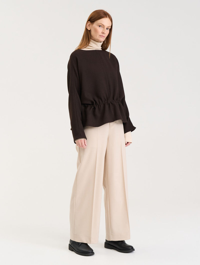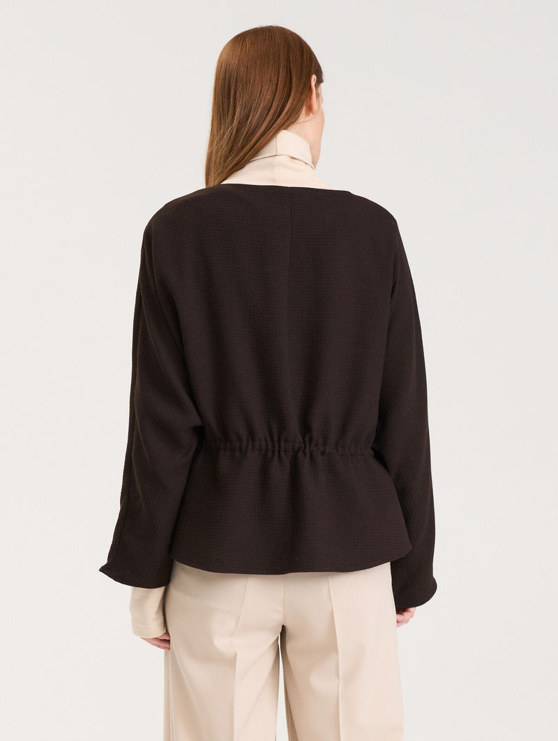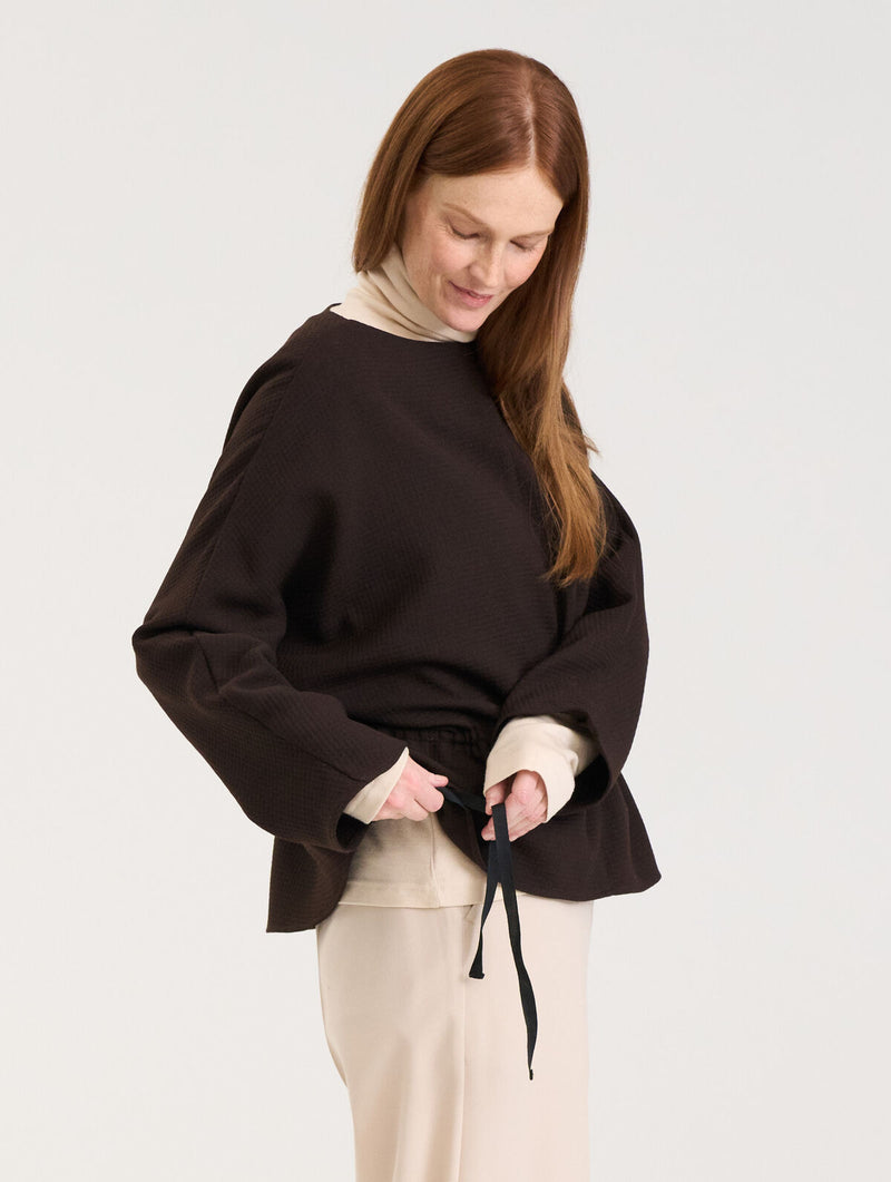 Naisten kimonohihainen paita. Edessä pystysauma sekä vyötäröllä nyöri, jolla paidan istuvuutta voi säätää. Hieman taaksepäin pitenevä helma. Paidan kangas on vohvelikangasta, jonka pinnassa on kolmiulotteinen, ruudullinen ja kennomainen rakenne.