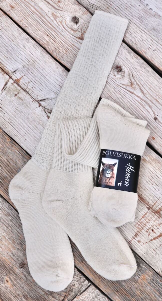 Alpakan kotimaassa, Perun Andeilla, on öisin –20° C pakkasta ja päivällä voi lämpötila kivuta +30° C. Näissä ankarissa olosuhteissa on kehittynyt yksi maailman hienoimmista eläinkuiduista, alpakka. Tästä materiaalista valmistetut sukat lämmittävät kylmässä ja viilentävät lämpimässä. Sukkien tuntu jaloissa on miltei huomaamaton, mutta erittäin miellyttävä, kuin toinen iho. Kuidun luontainen antibakteerisuus sekä kyky puhdistua tuulettamalla, vähentävät vesipesun tarvetta huomattavasti.