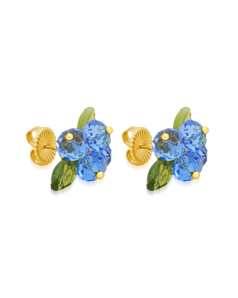 Blueberry Romance -korvakorut ovat valmistettu 18k kullatusta 925 Sterling hopeasta ja lasikristalleista.