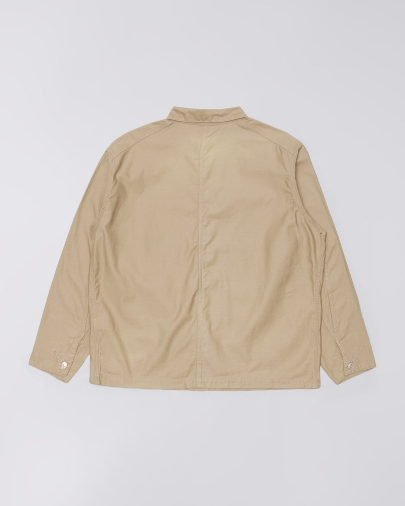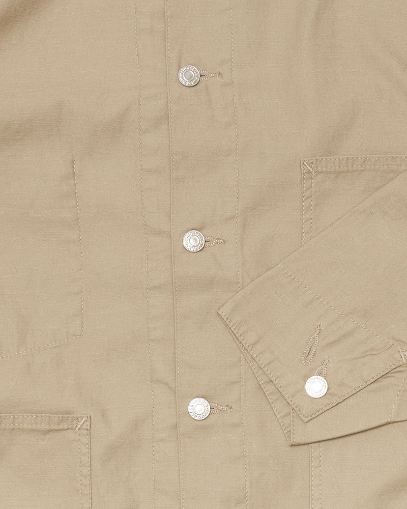 A modern take on a rugged workwear classic, this Coverall is cut from durable 214g/m² Military Cloth Back Satin, made entirely from 100% Cotton. Presented in a versatile Beige hue, it is shaped to a distinctly oversized fit for easy layering and comfort. The three-pocket, coverall-style silhouette is detailed with prominent, shiny silver metal flat buttons, reinforcing its utilitarian origins with a refined finish.