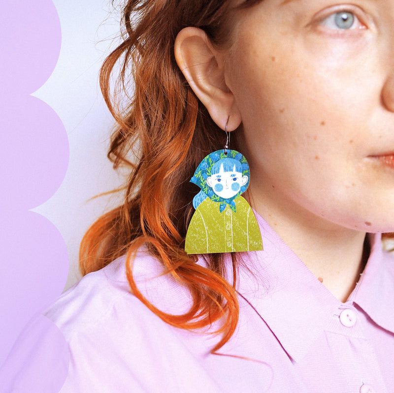 The design is printed on both sides of the earrings.