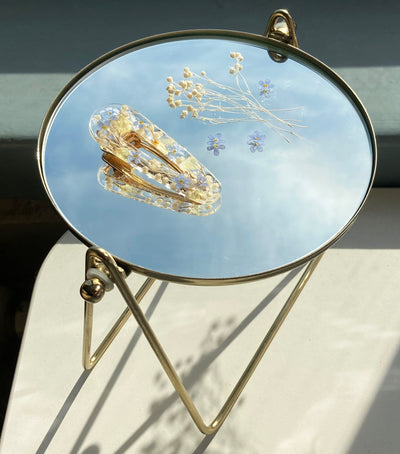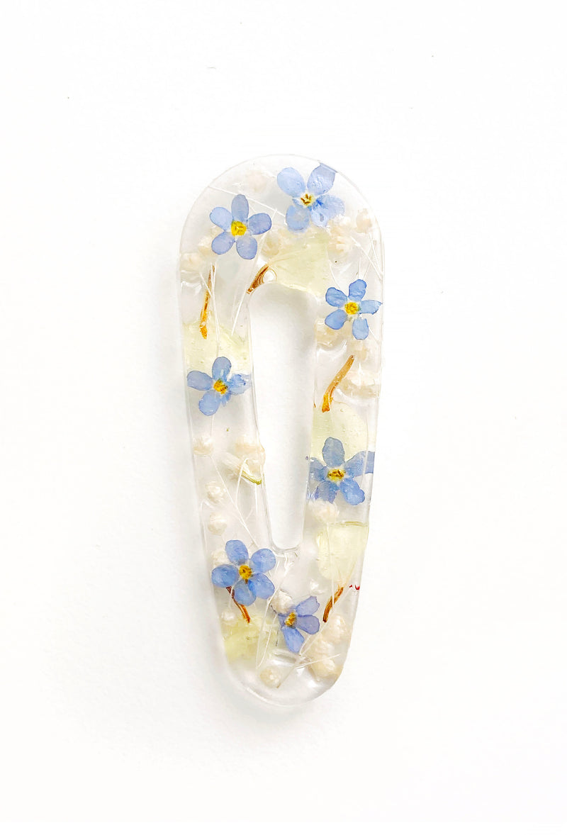 Hiuspinni aidoista kukista. Pinnin kullanvärinen alligaattoriklipsi pitää hiukset tukevasti paikoillaan liukumatta. Pinnit valmistetaan huolella käsin. Jokainen kukkanen ja terälehti asetellaan pinniin yksitellen, ja näin ollen on kukin pinni ulkonäöltään ainutkertainen. Tästä syystä myös valmiin tuotteen ulkonäkö saattaa poiketa hieman kuvista.