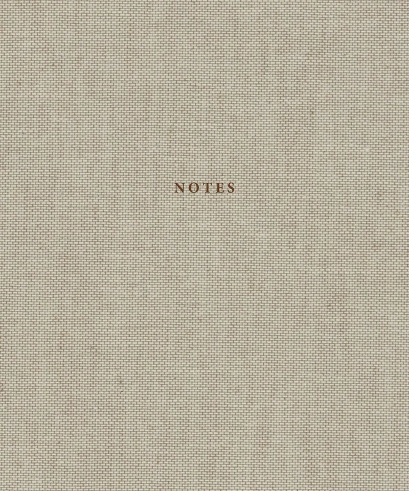 This notebook is a hardcover, finished with beautiful natural beige linen material and dark golden foil details.