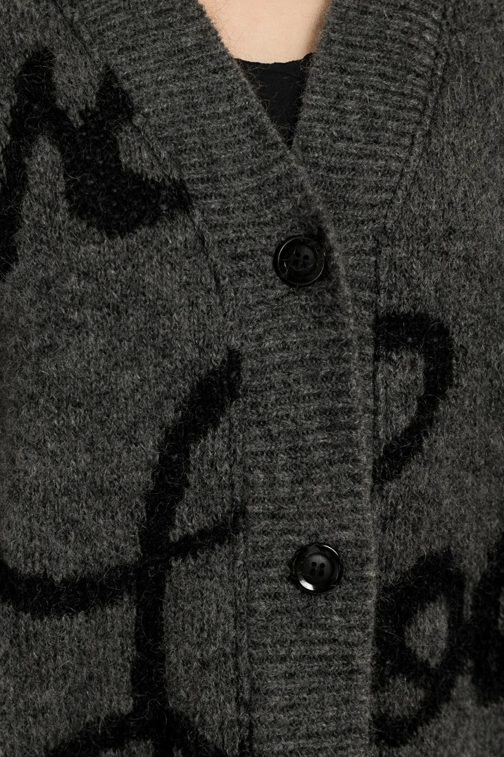 Neuleen mohair kehrätään ja värjätään Italiassa. Värjäämö/kehräämö käyttää 50 % omaa aurinkoenergiaa, jolla vähennetty hiilidioksipäästöjä. Mohair tulee kattojärjestön valvotuilta, RMS-sertifioiduilta tiloilta (Responsible Mohair Standard). Mallimme on 170cm pitkä ja hän käyttää kokoa Onesize.