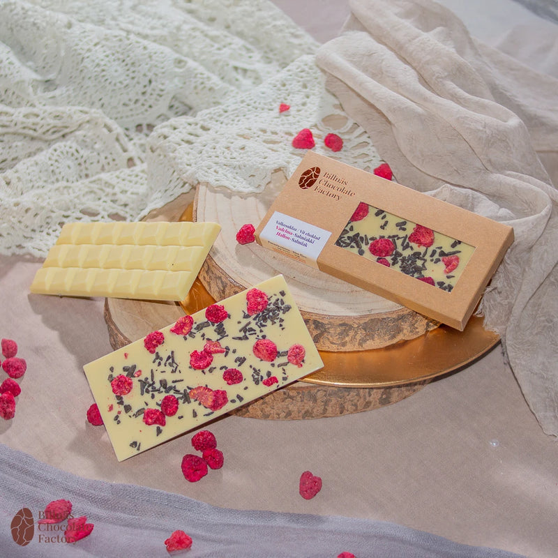 Valkosuklaa, kuivatut vadelmat ja suomalainen klassikko Apteekkarin Salmiakki (Haganol)– kuin villi makujuhla suussasi! Makeaa, hapokasta ja hieman suolaista, tämä yhdistelmä on juhlan sydän, joka yllättää ja ilahduttaa joka puraisulla!