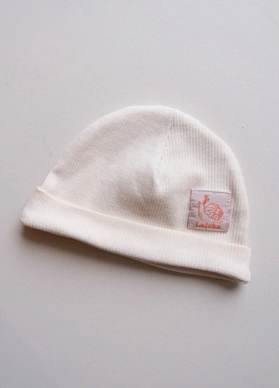 Cutest lil' beanie hat you'll see! Made from bits and scraps from our own T-shirt production this lil' hat will keep your newborn warm and very cute:)