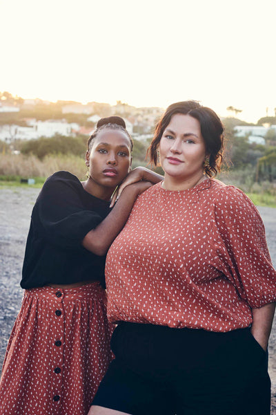 Cropped Blouse on malliltaan väljä. Käytä koon valinnan apuna vartalonmittataulukkoa ja vaatteen mittoja (viimeinen kuva). Mikäli pohdit kahden koon välillä, suosittelemme valitsemaan pienemmän koon.