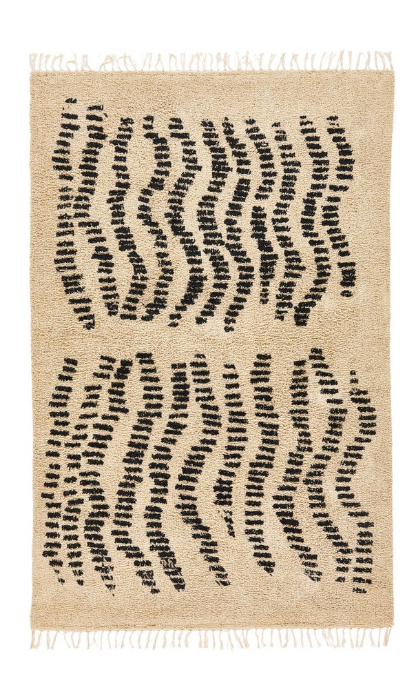 The soft and cosy Dyyni rug combines warm tones of sand with hand-drawn wave patterns. Dyyni is a timeless choice for a modern home. Dyyni rug can also be used as a wall textile.
