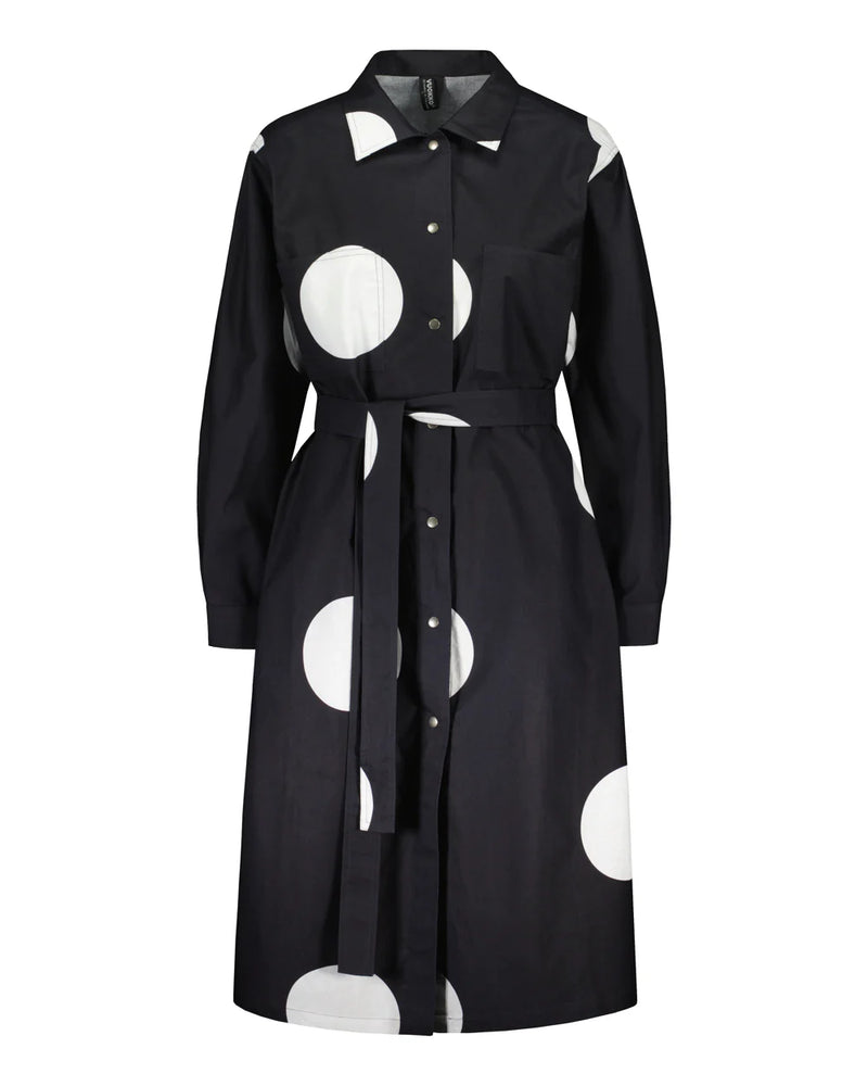 Monikäyttöinen A-linjainen takkimekko. Takkimekossa on kaksi rintataskua ja taskut lantiolla sivusaumoissa sekä nepparit edessä ja hihansuissa. Mekon mukana tulee vyö.